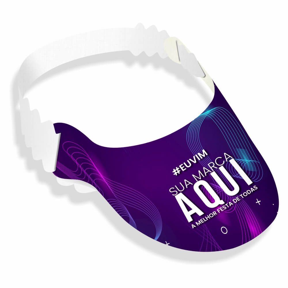 A tira de regulagem da Viseira é feita de papel couchê 250g na cor branca. Possui 40 cm de largura, com 4 cm de altura nos encaixes e 2,8 cm de altura no corpo.